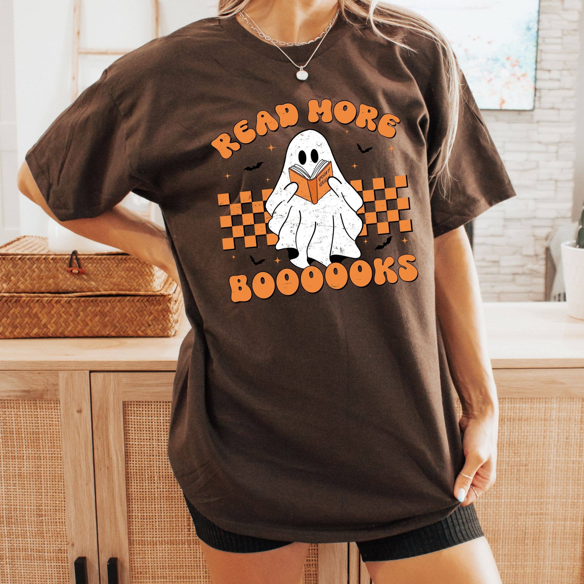 Our “Read More Boooooks” tee blends spooky Halloween vibes with bookish charm – a perfect pick for fall readers and cute-costume lovers. Featuring a ghost reading a book in front of orange checker print, it’s as comfy as it is clever.